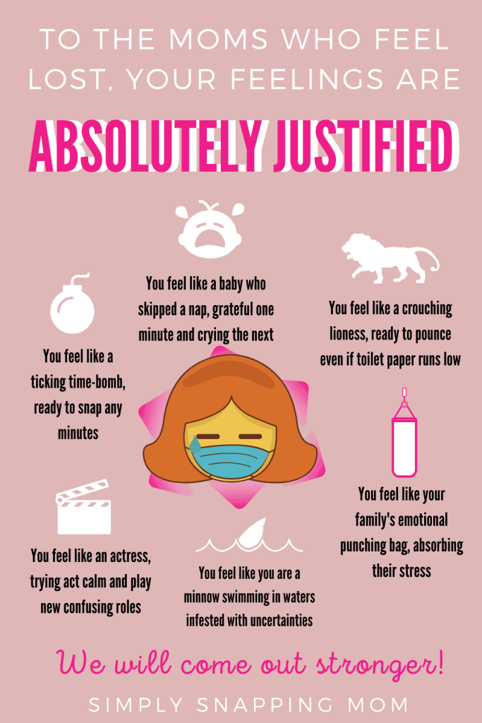 I needed to read this and feel comforted that I am not the only one acting like a two year old missing a nap. I go from feelings of uncertainty and fear to feelings of gratitude - thankful that I have this time with my family and that we are safe and healthy. AND I feel guilty for all of these emotions. Great job capturing this and relating to so many of us moms just trying to hold it together.